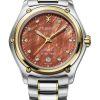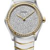 Women’s watch EBEL 1911, stainless steel and 18K yellow gold case, Ø 30mm, green mother-of-pearl dial with 10 diamonds (0.052ct), date window at 6:00, sapphire crystal with antireflective treatment underneath, two-tone stainless steel links bracelet, folding clasp, Swiss quartz movement, water-resistant up to 10 bar