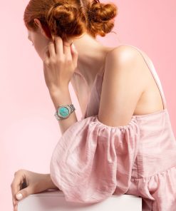 Marrying craftsmanship with accuracy, it displays feminine refinement with innate wearability. The 34 mm dial is made of a deep turquoise mother-of-pearl dial set with ten diamond markers, further elevated by the radiance of 60 diamonds nestled in 18K yellow gold. The EBEL 1911 Deep Turquoise features a discreetly positioned date aperture at 6 o’clock and an anti-reflective sapphire crystal.