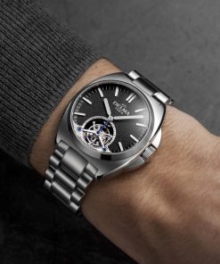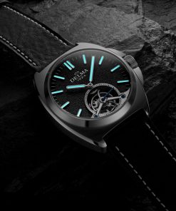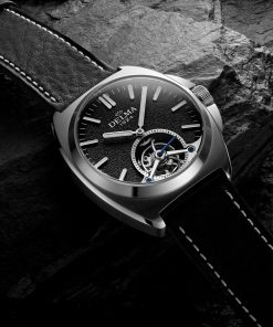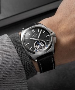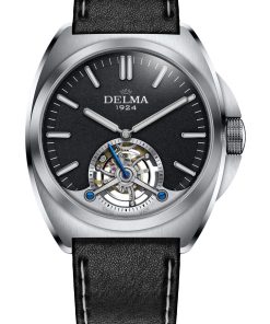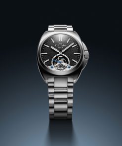 The movement’s aesthetic is just as impressive, with decorative touches like perlage and Côtes de Genève, and it paves the way for the brand’s future in creating more proprietary movements. The habillage of the DELMA 1924 Tourbillon matches the movement’s elegance, featuring a sable black dial with palladium nickel-plated hands and a 316L stainless steel case with brushed and polished finishes. It comes with a stainless steel bracelet and an Italian leather strap, showcasing the brand’s commitment to luxury, detail, and Swiss tradition.