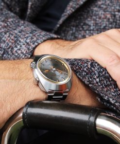 The silver-colored sunray dial, matched with the tone-on-tone stainless steel case is very sleek and interacts beautifully with the light. This blend of silver and gray tones reflects the timeless designs of the 1969 era. The distinctive dial color also pays tribute to the original and highly coveted Track1 Launch Edition, the limited edition timepiece from 2017 that began the Singer Reimagined journey.