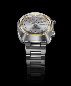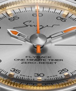 The 1969 Timer embodies Singer Reimagined’s high-watchmaking philosophy, featuring the latest version of the Agengraphe caliber, all within a compact 40mm case. The watch features a sun-brushed silver dial paired with a custom stainless steel case and bracelet by Singer. Their unisex size ensures they look stylish on both feminine and masculine wrists.