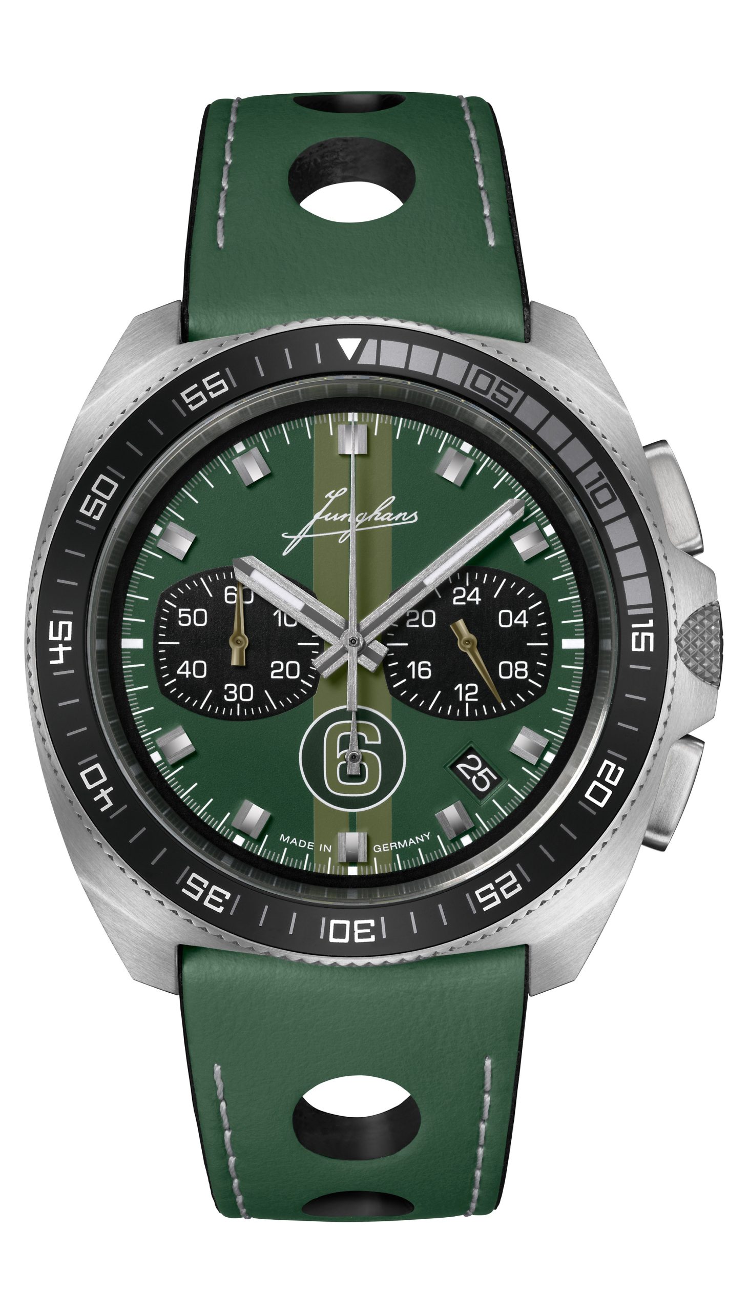 The 1972 Chronoscope Sports Edition 2024 pays homage to this legacy with its sporty design and advanced features. Limited to 200 pieces per variant, this watch comes in bright red, silver-grey, and dark green editions, each with dynamic double stripes on the dial and the number 6 resembling a racing number.