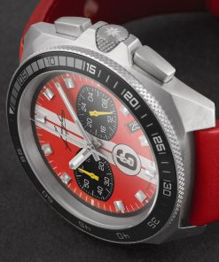 The 1972 Chronoscope Sports Edition 2024 pays homage to this legacy with its sporty design and advanced features. Limited to 200 pieces per variant, this watch comes in bright red, silver-grey, and dark green editions, each with dynamic double stripes on the dial and the number 6 resembling a racing number.