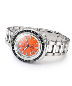 The dial pairs modern performance with vintage charm: polished indices with SuperLuminova C3, a date at 3, and the nostalgic “Saphir” label at 6. Water resistant to 600 meters and now powered by the Sellita SW200-1 Elaboré movement, the 2001. Finished with a period-correct skeleton steel bracelet, it’s a diver’s dream, then and now.