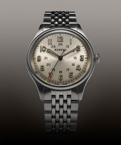 For 2025, BENRUS revisits the icon with a thoughtful reissue that respects the past while refining the details. The dial keeps its no-nonsense field watch aesthetic, but the case grows to a contemporary 39.5mm without losing its vintage soul. Slim at 9.95mm and stretching 47mm lug to lug, it wears comfortably while still feeling substantial. The vertical-brushed mid-case contrasts nicely with polished accents, while a double-domed sapphire crystal with anti-reflective coating brings modern durability without sacrificing vintage charm.