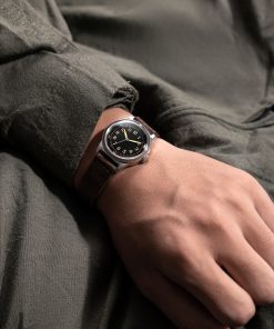 Using a 1944 Waltham as a benchmark, Praesidus imagined the Type 44 with great attention to detail. Unlike the original A-11s, the Type 44 retains a unique feature: the absence of a second-hand counter-balance, reflecting the vintage Waltham’s wear and tear over time, as it had broken off over time.