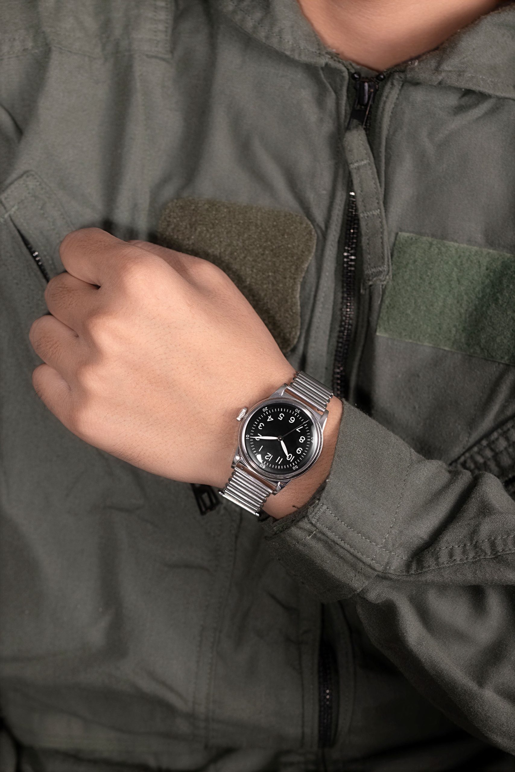 For those seeking a wearable, reliable A-11 that captures the essence of American ingenuity and the bravery of its creators, the A-11 Type 44 is the perfect choice. Available in a choice of 32mm and 38mm sizes, it features a 1940s-style Bonklip Bracelet, making it a timeless revival suited for the modern era. Proudly assembled in America, the A-11 Type 44 is a piece of history brought into the 21st century.