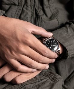 Using a 1944 Waltham as a benchmark, Praesidus imagined the Type 44 with great attention to detail. Unlike the original A-11s, the Type 44 retains a unique feature: the absence of a second-hand counter-balance, reflecting the vintage Waltham’s wear and tear over time, as it had broken off over time.
