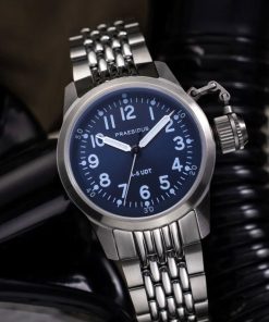 Praesidus has introduced a fresh take on the classic black dial with a striking sunray blue dial, which shimmers in the light to reveal a rich blue hue. The standard white indices have been updated to a light blue, which is luminous for visibility, giving the watch a unique and contemporary flair.