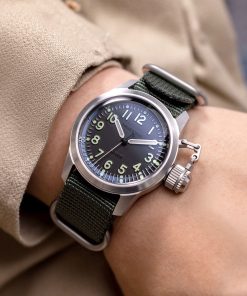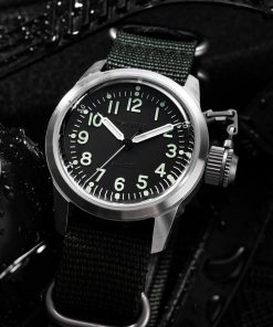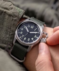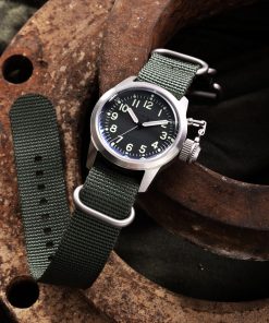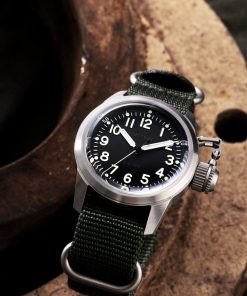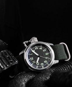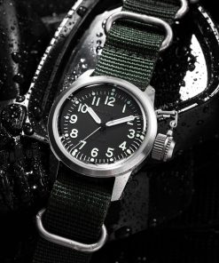Inspired by WW2 USN BUSHIPS designs, the A-5 is “field-tested.” Its oversized crown cap, welded directly onto the case, speaks to its operational origins. The original design has been enhanced to achieve 20ATM (660ft) water resistance with a double-domed sapphire crystal.