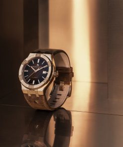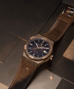 Powered by the ML135 automatic calibre, it promises precision and reliability. The vintage brown leather strap adds a touch of urbanity, complementing the evolving patina of the bronze case. With Maurice Lacroix’s EasyStrap system, swapping straps is a breeze, offering versatility for any occasion.