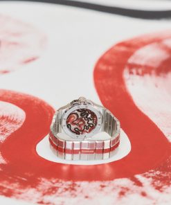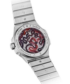 Chopard’s Alpine Eagle Sunburnt is a 20-piece limited edition watch created in partnership with artist Shaun Daniel Allen (Shal) to honor Australia’s heritage. It features a “Sunburnt Red” dial, reminiscent of the Australian landscape, and is made with Lucent Steel™, a material that is at least 80% recycled, offering high resistance and hypoallergenic properties.