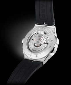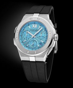 One of the standout features of the Alpine Eagle XL Chrono is its robust rubber strap, which, while being water-resistant and comfortable, retains the collection’s signature aesthetic. Chopard’s history of using rubber in its designs dates back to 1995, when they first incorporated rubber treads into the straps of their Mille Miglia chronograph collection.