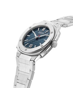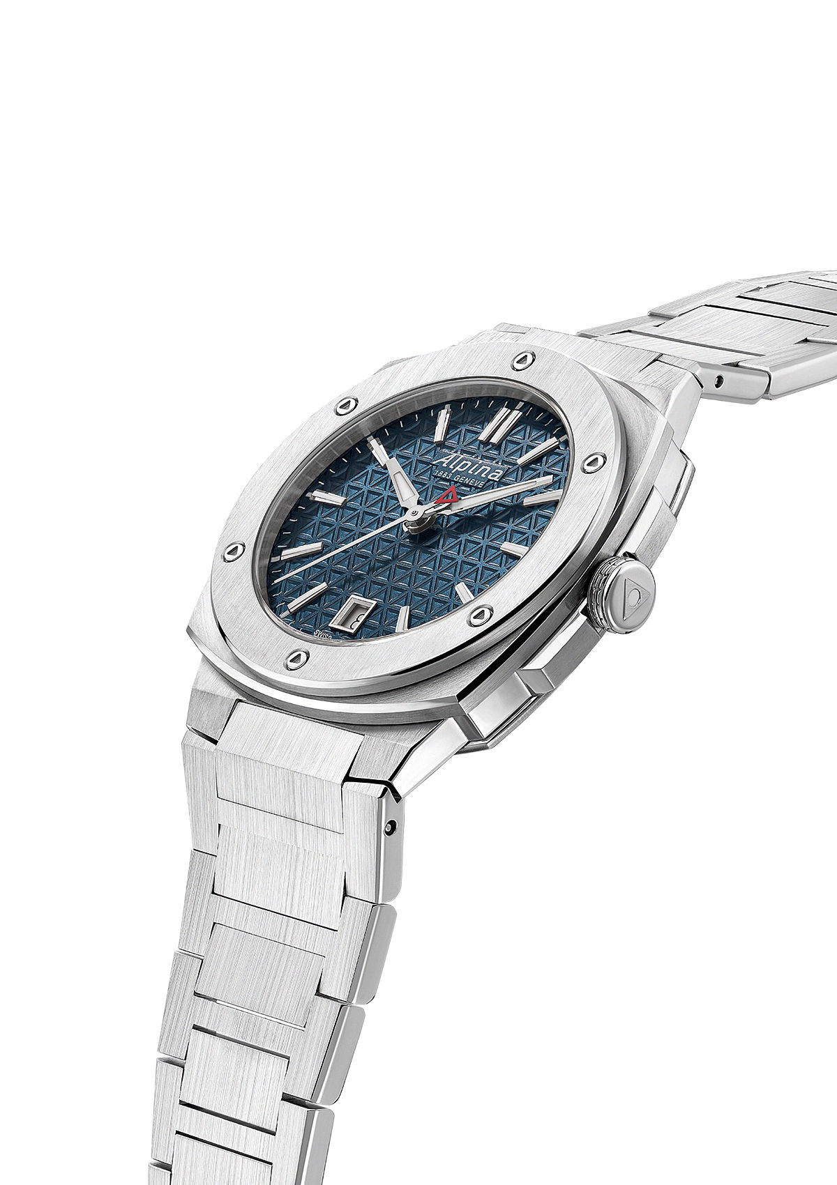 Sporting a robust yet refined appearance, the Alpiner Extreme Quartz has a steel case with alternating satin and polished finishes. The vertical brushed bezel complements the steel bracelet, while the knurled crown ensures a secure grip. Engraved with the Alpina logo, each screw contributes to the watch’s water resistance of 10 ATM.