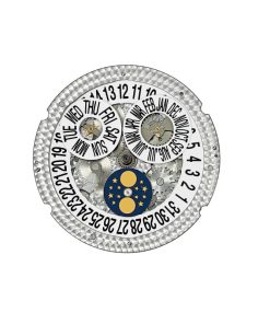 Self-winding mechanical movement. Caliber 324 S QA LU 24H/206. Annual Calendar. Day, date and month in apertures. Moon phases. 24-hour indication. Sweep seconds hand.