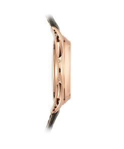 Rose gold. Skeletonized lugs. Sapphire crystal case back. Water-resistant to 30 m. Diameter: 40 mm. Height: 11.36 mm.