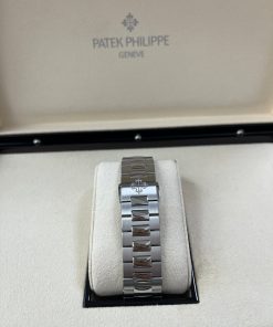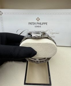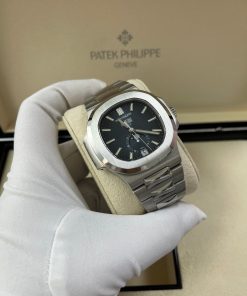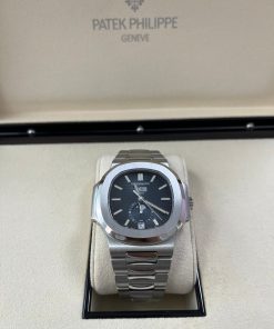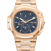 Self-winding mechanical movement. Caliber 324 S QA LU 24H/303. Day, date, month in apertures. Moon phases. 24-hour indication. Sweep seconds hand. Blue, black gradated, gold applied hour markers with luminescent coating. Steel. Screw-down crown. Sapphire-crystal case back. Water-resistant to 120 m. Case diameter (10-4 o’clock): 40.5 mm. Height: 11.3 mm. Steel. Nautillus fold-over clasp.