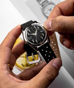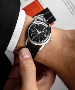 The Antarctic Spider’s dial is protected by a nearly diamond-hard double-domed sapphire crystal and is water-resistant up to 50 meters. The watch features a polished and brushed silver stainless steel case, measuring 11.1mm in thickness. The dial, available in silver or black for now, features eight spider-leg-like lines converging at the center, symbolizing its namesake. Eight vertically applied indexes on a sunray silver or black dial enhance its unique design.