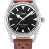 Powered by the manually wound Landeron 21 caliber, the watch features a slim 7mm case thickness (10.1mm including the crystal).