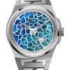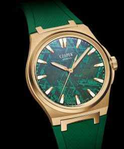 The new models include the Mount Erebus Lapis Lazuli in rose gold, its dial cut from deep-blue stone flecked with golden pyrite, and the Mount Erebus Falcon Eye, also in rose gold, with a dial that shimmers in layered tones of anthracite, blue, and bronze. Both stones are notoriously difficult to master: lapis can fracture in cutting, while falcon eye yields very few flawless dials. The third, the Mount Erebus Green Meteor, brings back the steel meteorite edition of last year in a new yellow-gold case, its Gibeon meteorite dial acid-etched, lacquered in translucent green, and alive with crystalline Widmanstätten patterns.