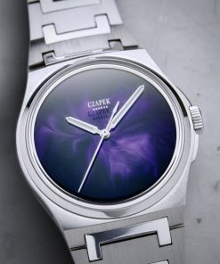 The concept started when Xavier de Roquemaurel, CEO of Czapek & Cie, encountered an artist working with Metalem who specialized in creating unique hand-varnished dials. These designs were so distinctive that they hadn’t been offered to any brand, with one dial even resembling a cosmic nebula. During Dubai Watch Week, Xavier met an Instagram collector, ‘@Tranqated,’ whose fascination with astronomy inspired a lively discussion. This encounter planted the seed for a space-themed dial. By May 2020, as Czapek prepared to launch its Antarctique collection, this idea materialized into the Antarctique Orion Nebula series—10 unique pieces featuring galaxy-inspired dials, which sold out quickly. Subsequent designs included the turquoise Abyss, green Emerald Iceberg, and Celestial. The newest addition, the Purple Storm, is the first to showcase vibrant violet tones using this specialized dial-making technique.