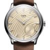The dial of the Antarctique Purple Storm has a striking violet gradient, capturing the mood and intensity of a natural storm. Designed to evoke movement and mystery, the dials reveal swirling layers of purple that mimic storm clouds when touched by light. Housed in a stainless steel case, the watch is powered by Czapek’s in-house SXH5 caliber, an automatic movement with a 60-hour power reserve. The movement features a variable inertia balance wheel for enhanced precision and efficiency. Its micro-rotor is made from recycled platinum and is visible through the sapphire case back.