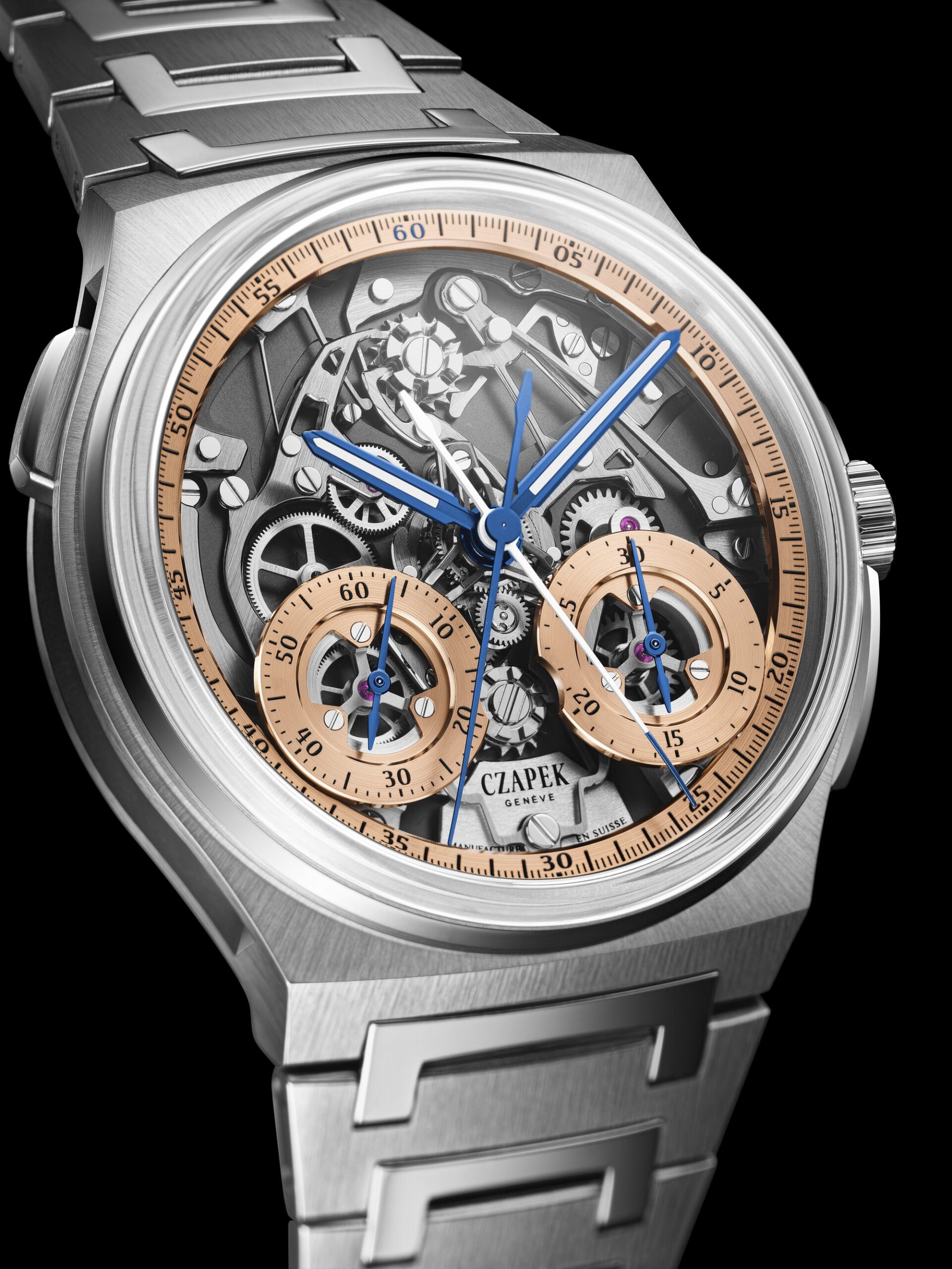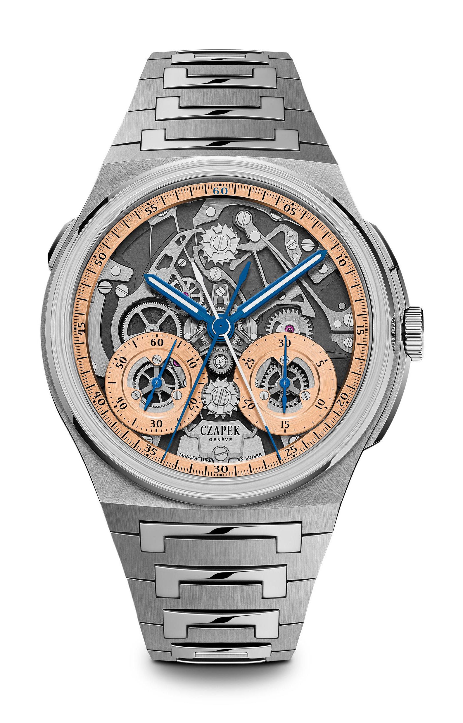 This edition also comes with Czapek & Cie’s integrated bracelet and an additional blue rubber strap, embodying sporty elegance and high complication in watchmaking.