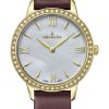 Complementing the beautiful backdrop of the dial are the leaf-shaped hour and minute hands, a poetic touch that tells time with grace. The applied Roman numerals and indexes, finely positioned, offer a classic look, reinforcing the timeless appeal of the Antibes collection.