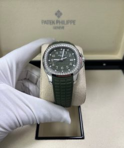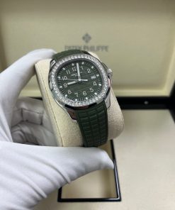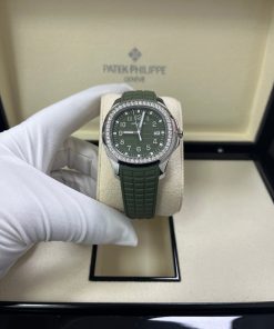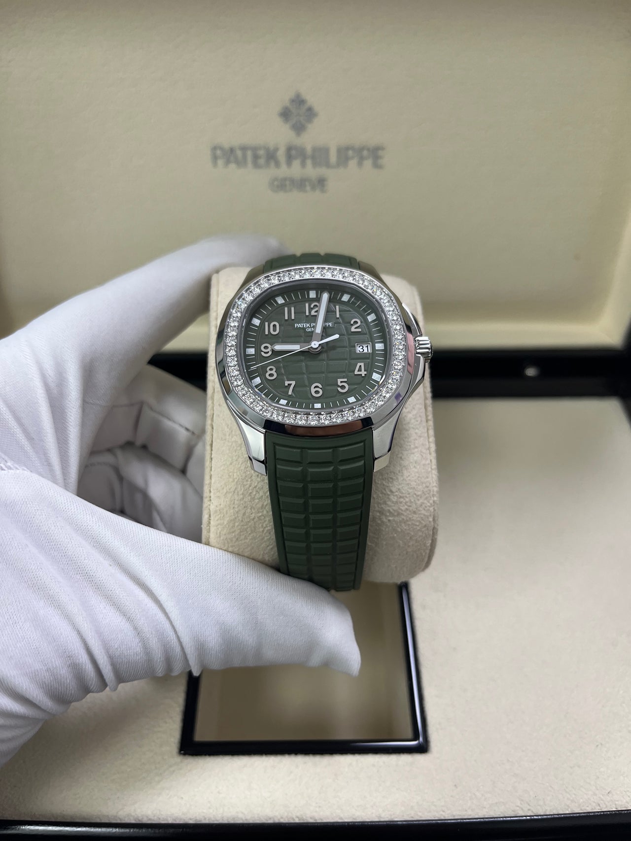 Khaki green, embossed with Aquanaut pattern, gold applied numerals.