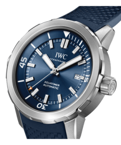Powered by the IWC-manufactured 32111 caliber, this Aquatimer Automatic features a stainless steel case, a blue dial, and a blue rubber strap.