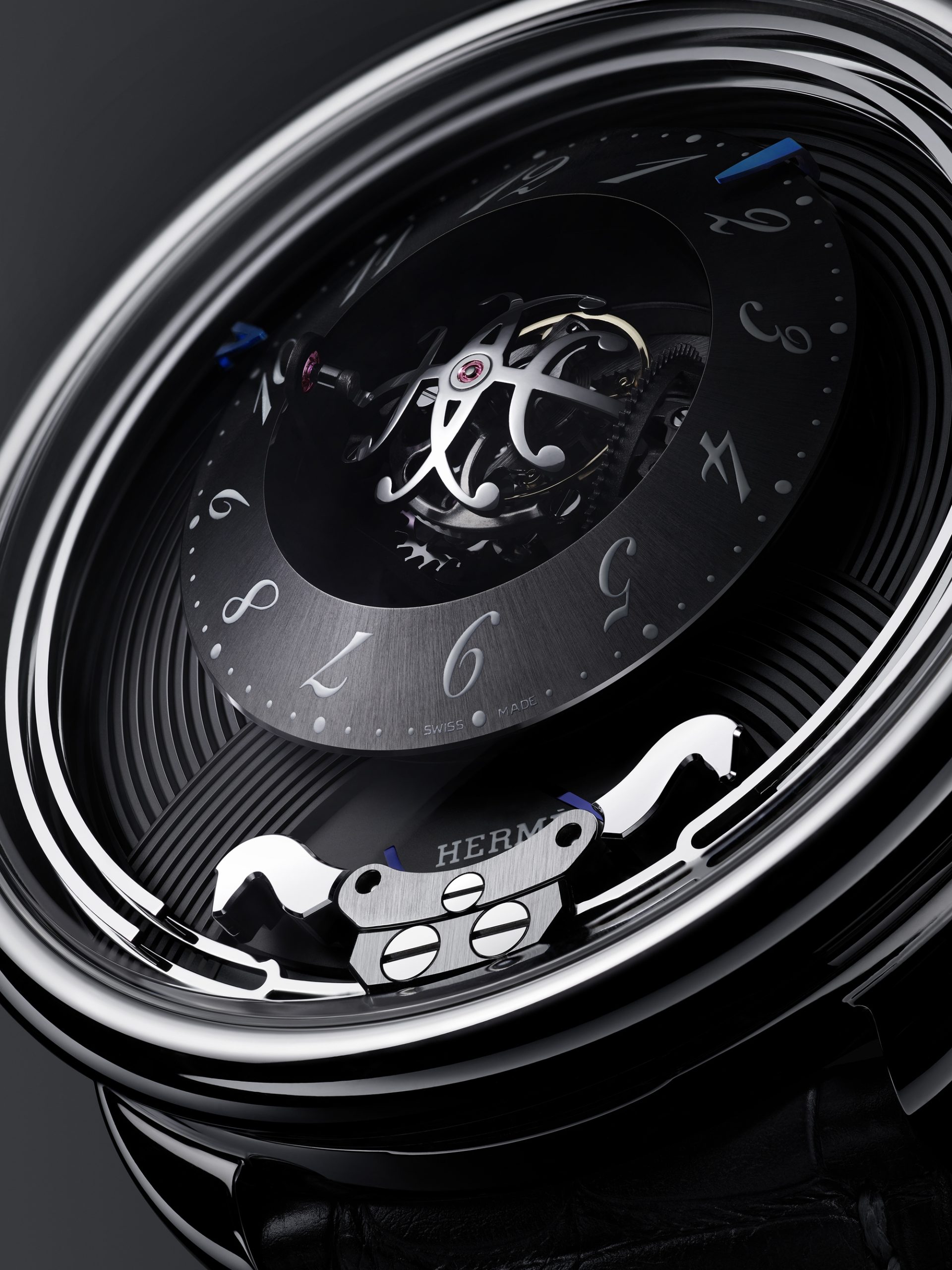 Available in limited editions of 24 pieces in titanium or rose gold, each paired with an alligator strap, the Arceau Duc Attelé embodies the union of Hermès style and horological expertise.