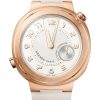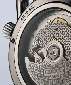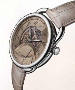The updated Arceau Le temps suspendu brings a fresh look to the original 2011 design. Housed in a sleek 42 mm case, the openworked dial showcases the exclusive “Time Suspended” module, powered by the Manufacture Hermès H1837 movement visible through a sapphire caseback. Available in white or rose gold, the watch is offered in three radiant dial finishes—sunburst blue, brun désert, and rouge sellier. Signature asymmetrical lugs, manufactured in the Hermès Horloger workshops, affirm the timeless elegance of this singular timepiece.