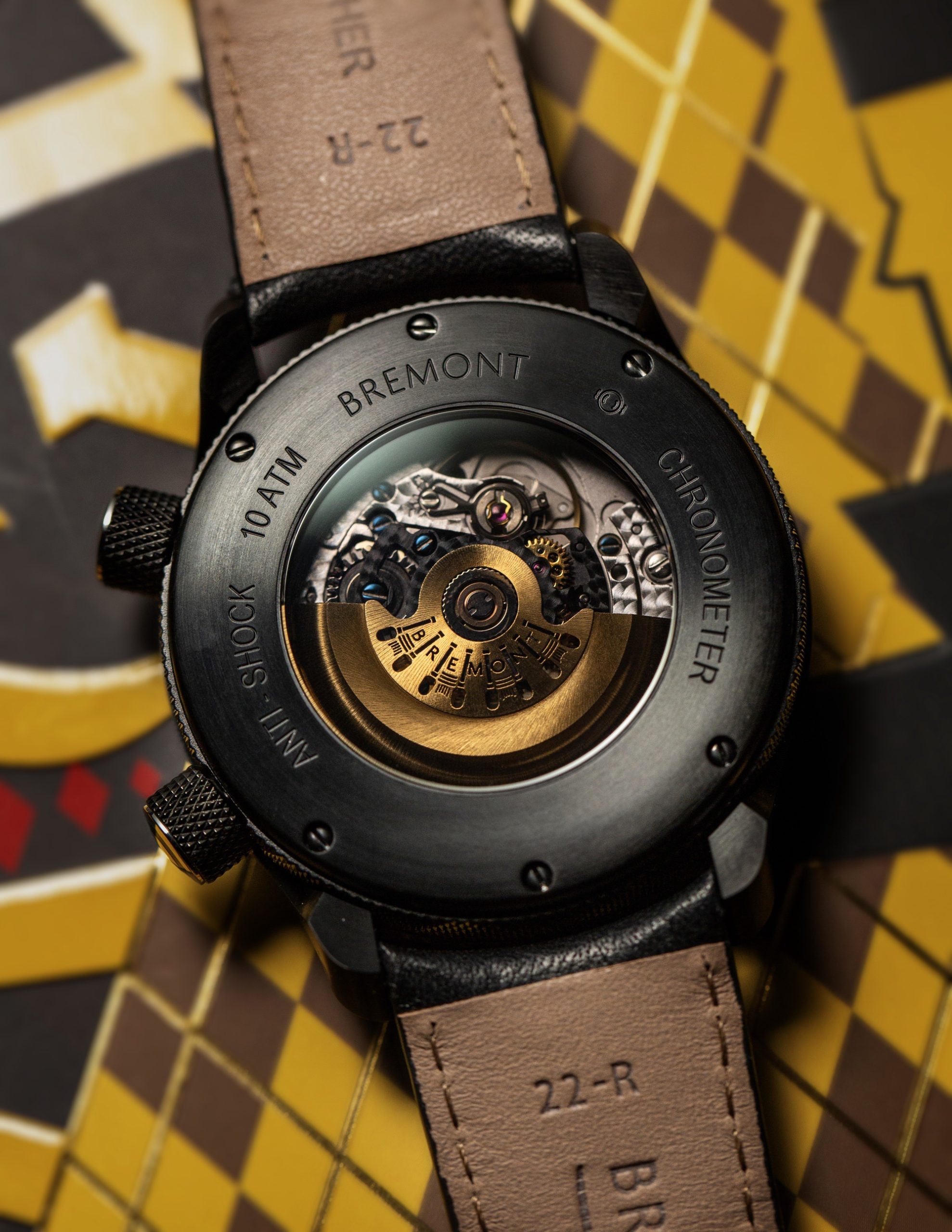 The Argylle Jet is a robust 43mm timepiece modeled on the Bremont U-2, a design born from the military, following the success of the Bremont military air crew watch created in collaboration with Martin-Baker (MB). This U-2 chronometer incorporates advanced features from the MB, including an anti-shock rubberized movement mount, built to endure the MB ejection programme, and adds further functionality. The high-performance Argylle Jet is crafted in DLC-treated stainless steel with a Trip-Tick case construction and a jet-black barrel, mirroring the stealthy attributes of its character inspirations. It features a 38-hour power reserve and a date display at 3 o’clock. The black Argylle patterned dial is accentuated with blue hour, minute, and seconds hands, filled with vintage super-luminova, consistent with Bremont’s signature stealth designs. Additionally, the second hand is tipped in vibrant yellow, echoing the color palette of the film.