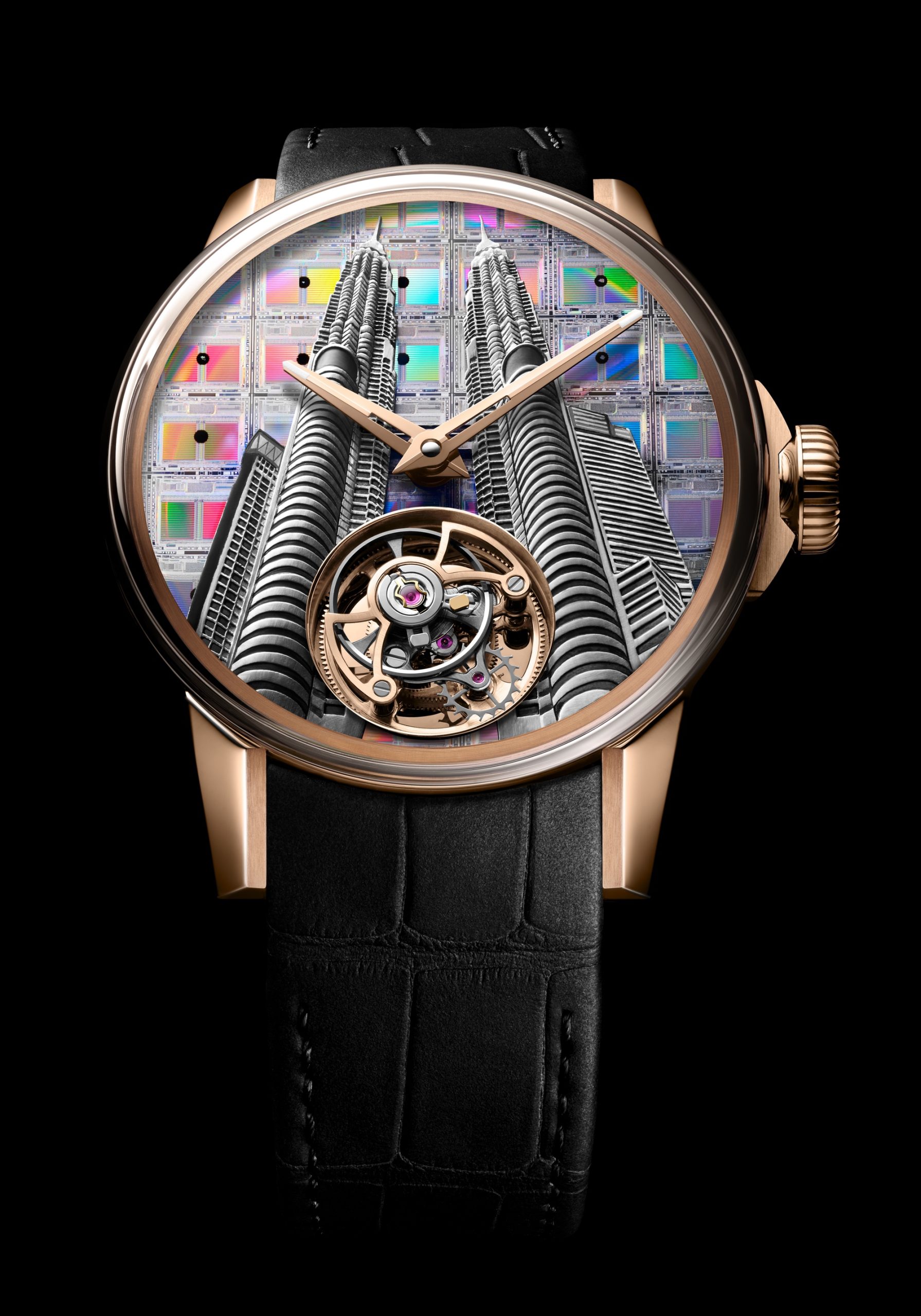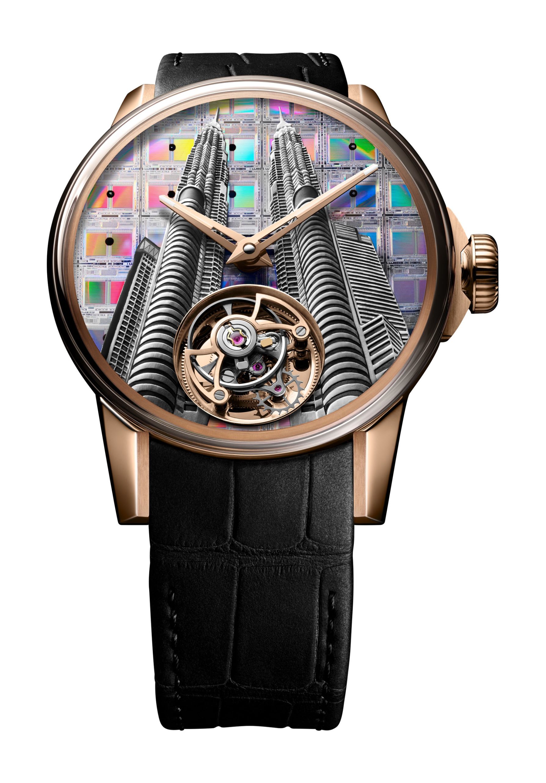 Kuala Lumpur: Depicting the iconic Petronas Towers, this piece showcases the city’s technological prowess with towers carved out of silver on a silicon dial engraved with microelectronic circuits.