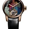 Each timepiece in this collection features a flying tourbillon within an off-center cage, defying gravity in a visually stunning manner. Housed in 18-carat red gold cases, these watches are presented in a luxurious trunk decorated with a world map dating back to 1786, symbolizing the timeless journey of watchmaking excellence across continents and centuries.