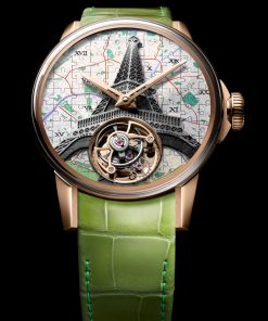 Paris: This piece embodies the timeless charm of the City of Lights with a dial featuring a real fragment from the Eiffel Tower, meticulously hand-engraved and set on a jigsaw puzzle dial representing the map of Paris.