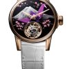Each timepiece in this collection features a flying tourbillon within an off-center cage, defying gravity in a visually stunning manner. Housed in 18-carat red gold cases, these watches are presented in a luxurious trunk decorated with a world map dating back to 1786, symbolizing the timeless journey of watchmaking excellence across continents and centuries.