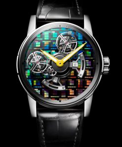 Visually, the ASTRONEF TECHNO is striking, with its double satellite tourbillon moving over a silicon wafer dial with engraved microelectronic circuits, creating dynamic light reflections. The case is an innovative construction of sapphire and grade-5 titanium with openworked lugs for a lightweight, avant-garde appearance.
