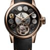 The ASTRONERF TECHNO is powered by the manual movement LM 105, with ceramic ball bearings and two barrel springs, providing a 48-hour power reserve. It took three years to develop this intricate mechanism. The crown has been redesigned for efficiency, with a selector integrated into the case back for time-setting and winding without pulling.