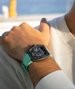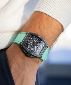 The line-up includes the UltraFino Skeleton Titanium Pink Edition, which frames the UT01 calibre’s flying tourbillon in a titanium case with pink accents; the UltraFino Dial Titanium Sky Blue Edition, featuring the Golden Diamond dial motif rendered in tranquil blue; and the UltraFino Skeleton Carbon Aquamarine Edition, pairing forged carbon with luminous details drawn from Mexico’s lagoons. All three can be worn on a vibrant rubber strap or an integrated titanium bracelet for the skeletonized versions and carbon for the dial version.