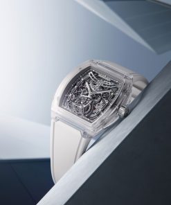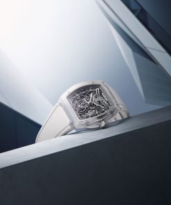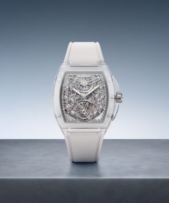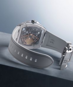 Completing the watch is a natural vulcanized rubber strap, offered in white and black, secured by a grade 5 titanium buckle. Soft yet resilient, it echoes the case’s flowing geometry while offering comfort for daily wear. The UltraFino Sapphire proves that a sapphire watch can transcend showcase status: it is both a technical feat and a refined companion, uniting transparency, lightness, and endurance in one of the most daring interpretations of contemporary watchmaking.