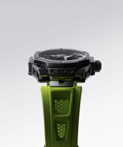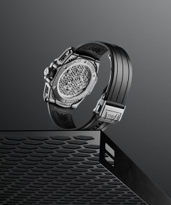 Ross has intricately worked on detailing, turning the watch case into a gray monochrome ensemble complemented by rubber straps available in various colors, enhancing its industrial appearance. Components of the watch are adorned in shiny micro-blasted titanium, harmonized with subtle incorporations like a gray rubber overmolded crown and a neutral shade for the tourbillon bridge, allowing versatile pairings with the straps. The design ethos echoes a symphony of the organic with industrial elements, promoting a balance forged through innovative manipulations of traditional and hyper-technical elements. Inspired by nature’s sacred geometry, Ross applies hexagonal honeycomb shapes, emphasizing natural governing patterns and synthesizing them with the watch’s functionality and aesthetics.