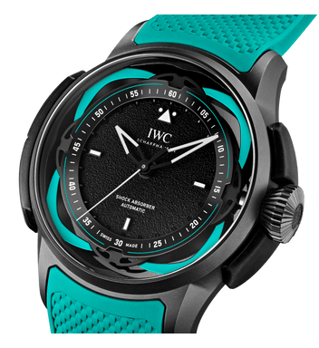 The Big Pilot’s Watch Shock Absorber XPL Toto Wolff x Mercedes-AMG PETRONAS Formula One™ Team combines IWC’s patented SPRIN-g PROTECT shock absorber system with a technical design inspired by the team’s signature color scheme.