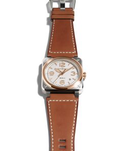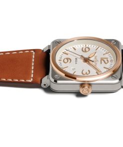 The BR 03 White Steel & Gold retains Bell & Ross’s iconic “circle within a square” design and is water-resistant up to 100 meters. It is powered by the Calibre BR-CAL.302-1 self-winding mechanical movement, with a 54-hour power reserve.