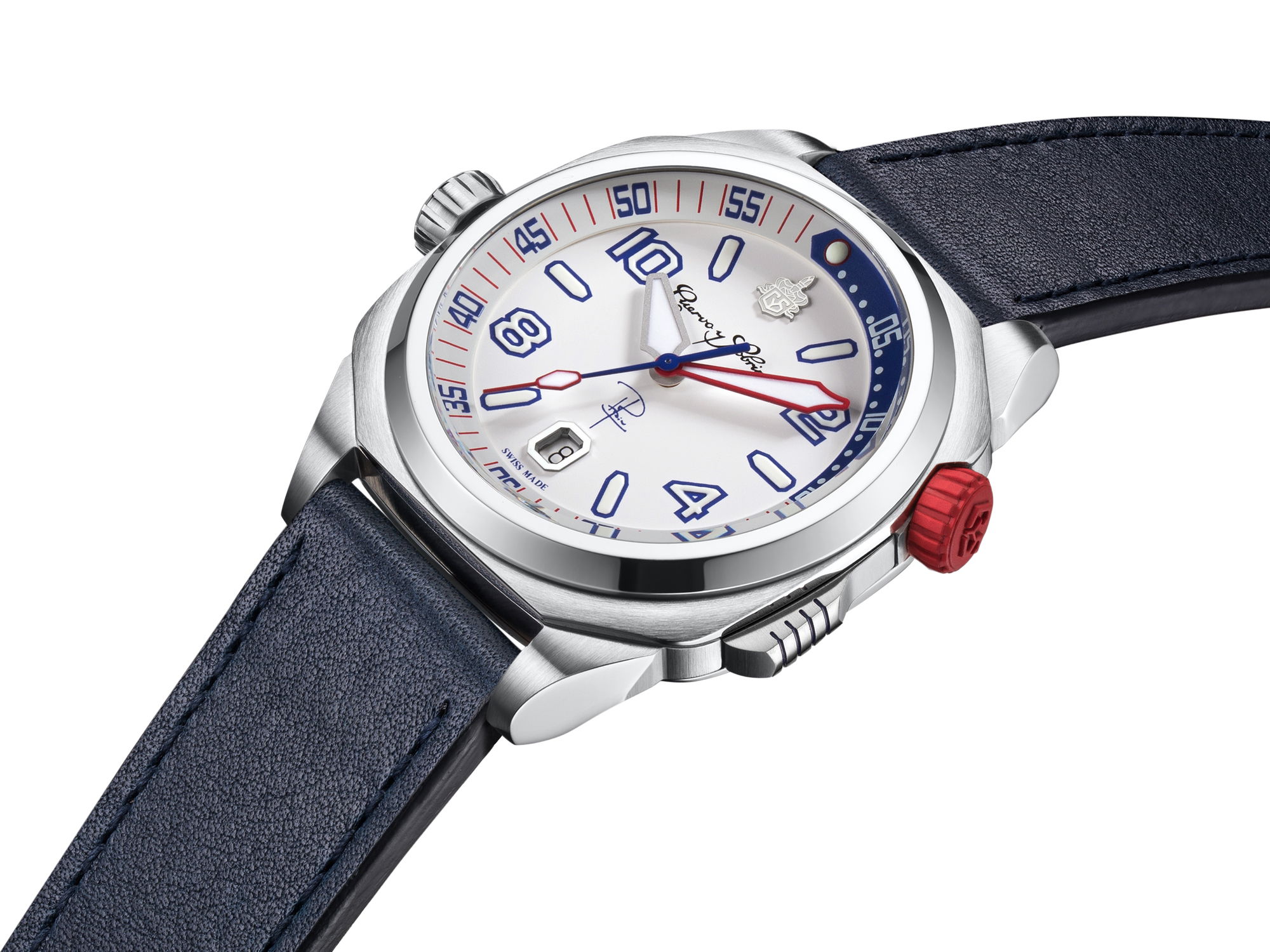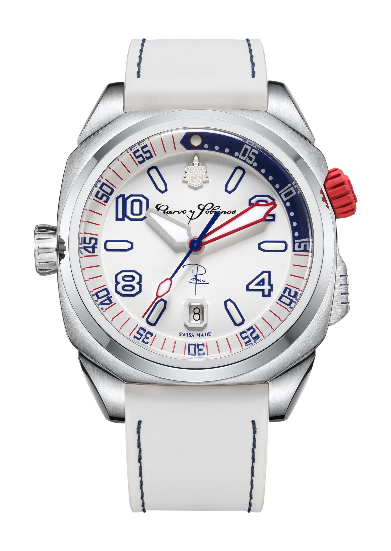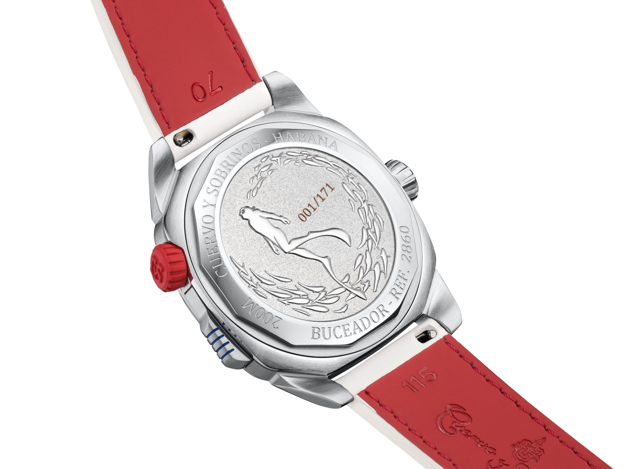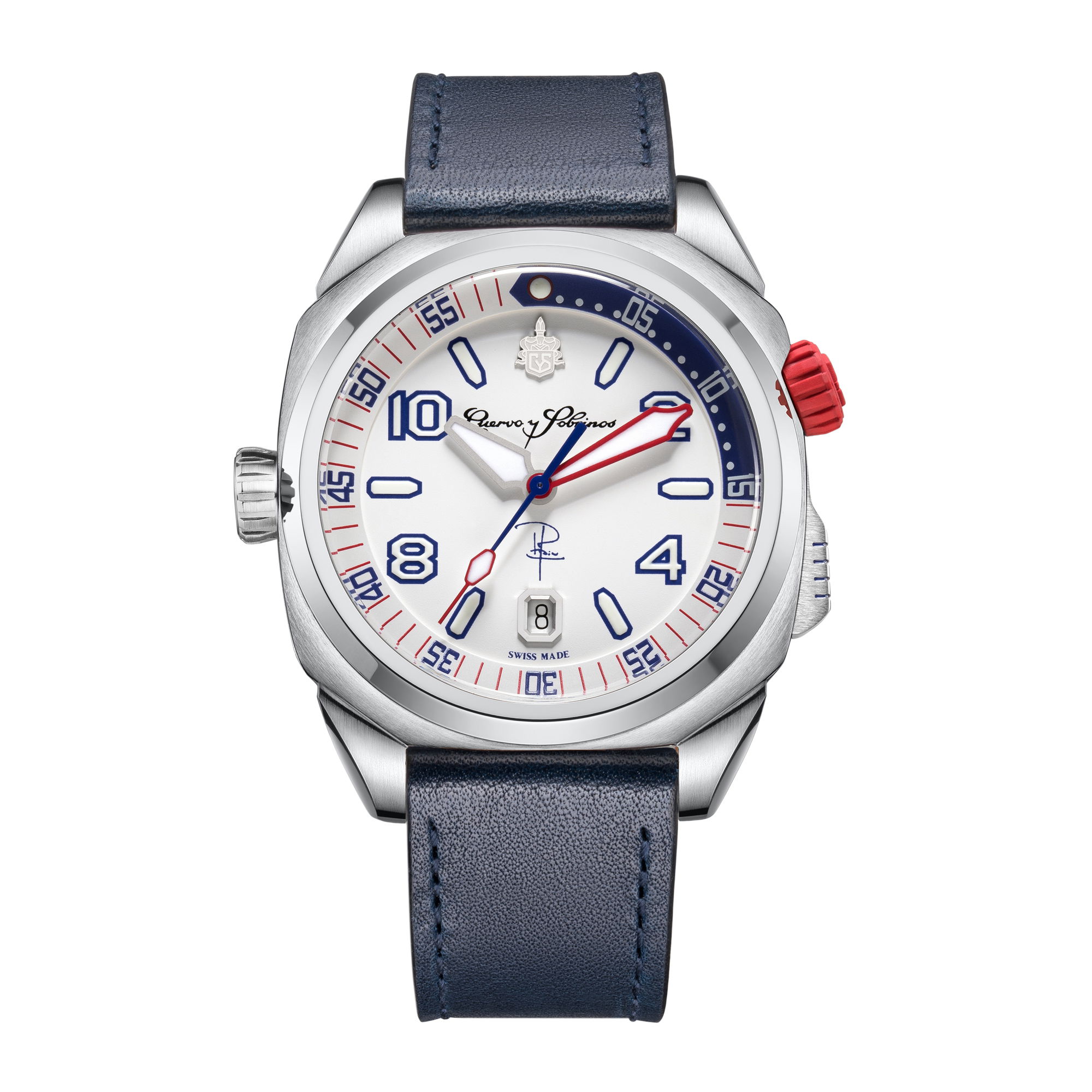 Cuervo y Sobrinos pays tribute to Cuban freediving legend Francisco ‘Pipin’ Ferreras with the Buceador Caribe Pipin diver’s watch. This striking timepiece features blue, red, and white hues, reflecting the Cuban flag, and is designed for optimal underwater performance.