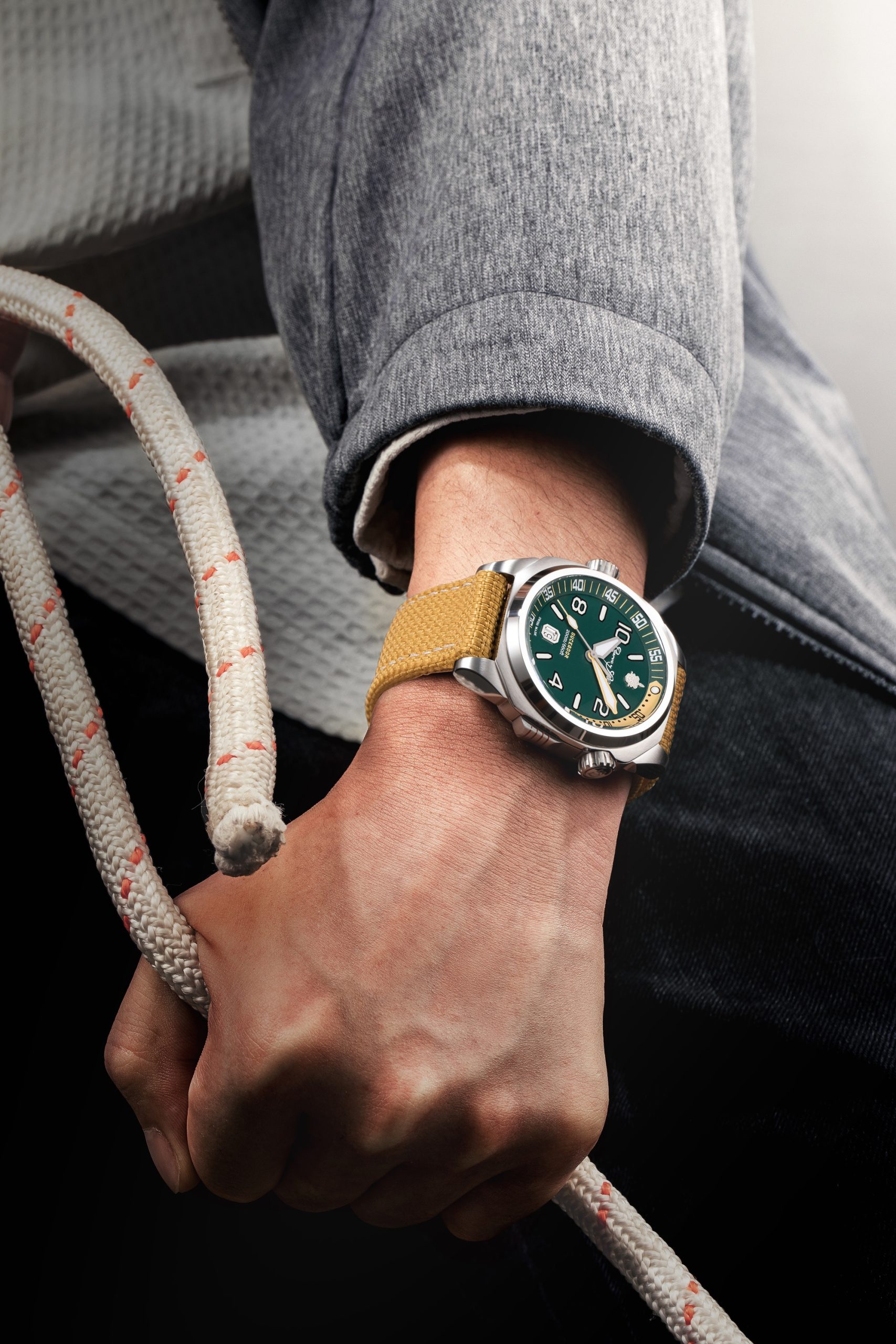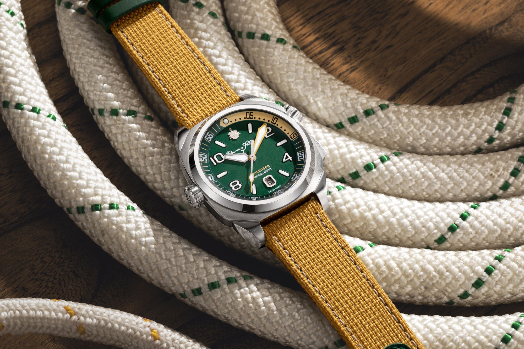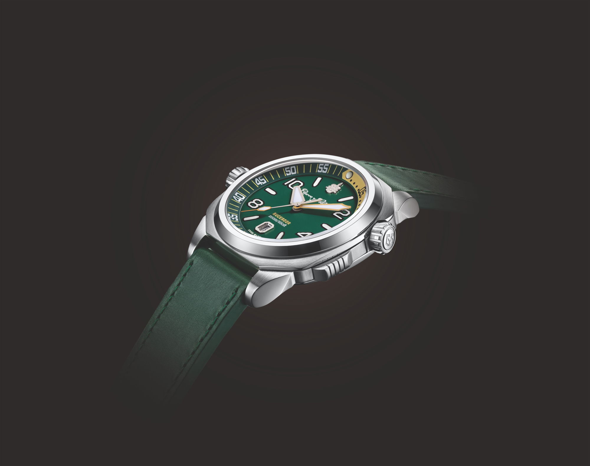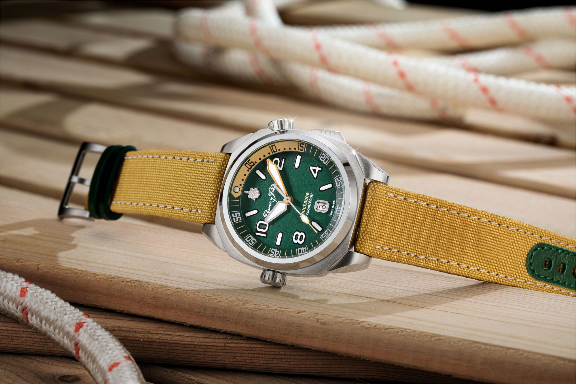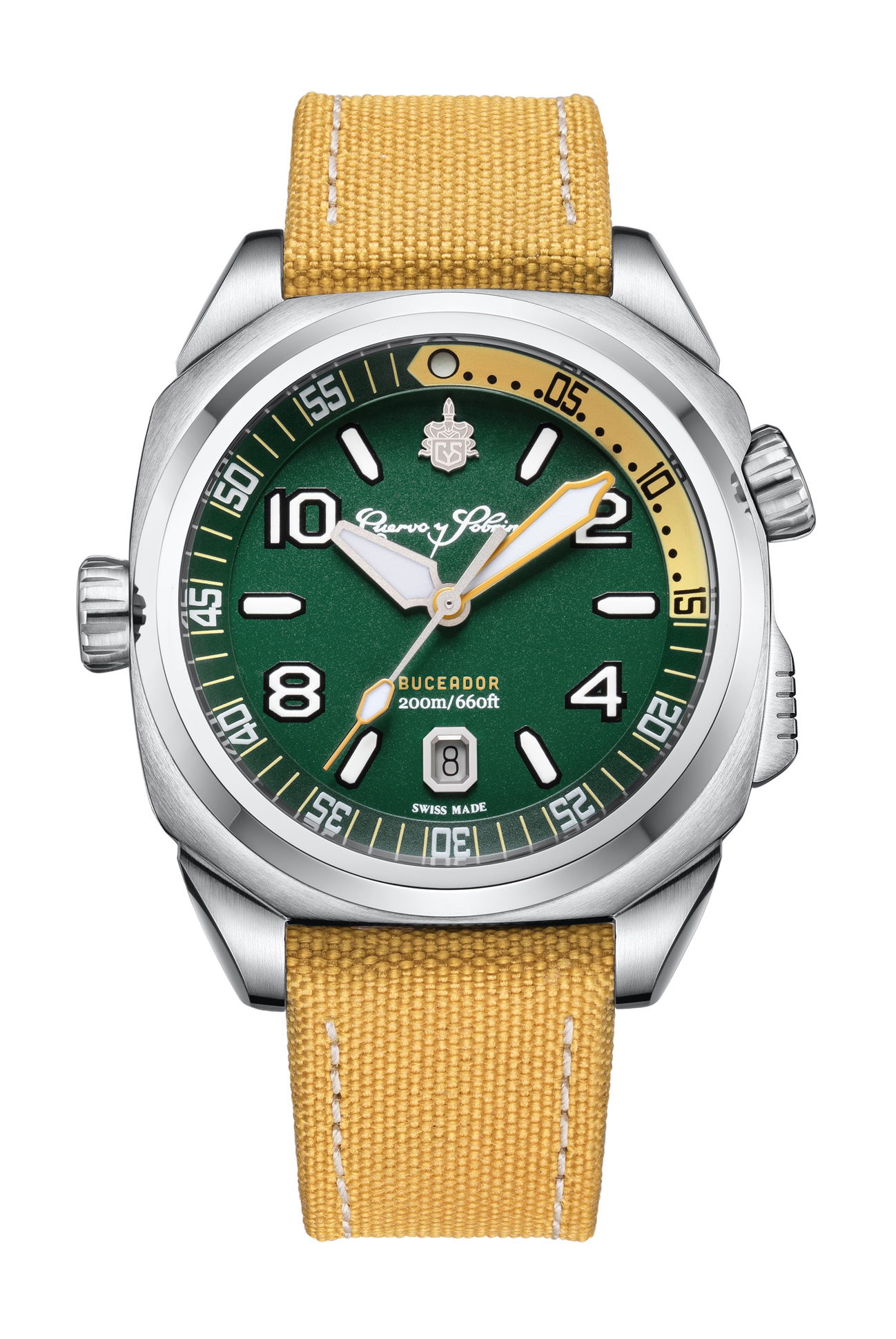 The Buceador Caribe series from Cuervo y Sobrinos draws inspiration from the vibrant colors and rich aquatic life of Cuba. Founded in Cuba in 1882, Cuervo y Sobrinos now manufactures its timepieces in Switzerland, blending modern design with Havana’s retro charm.