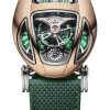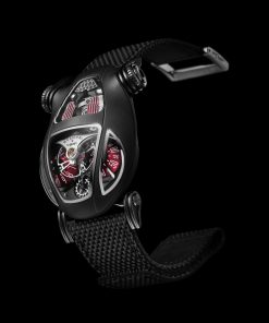 Transforming the Serpenti into a mechanical marvel required an entirely new approach to engineering, design, and manufacturing. Unlike conventional round cases, its complex curves demanded extensive prototyping and precision machining with 5-axis 3D milling. The case integrates five sapphire crystals, including the snake’s eyes, and is water-resistant to 30 meters. Inside, an in-house MB&F movement defies tradition, replacing hands with rotating domes that animate the serpent’s hypnotic gaze. These ultra-light aluminum domes, coated in Super-LumiNova, glow in the dark, while a 14mm flying balance wheel beats at 18,000 vibrations per hour, held in place by a sculpted three-dimensional bridge.