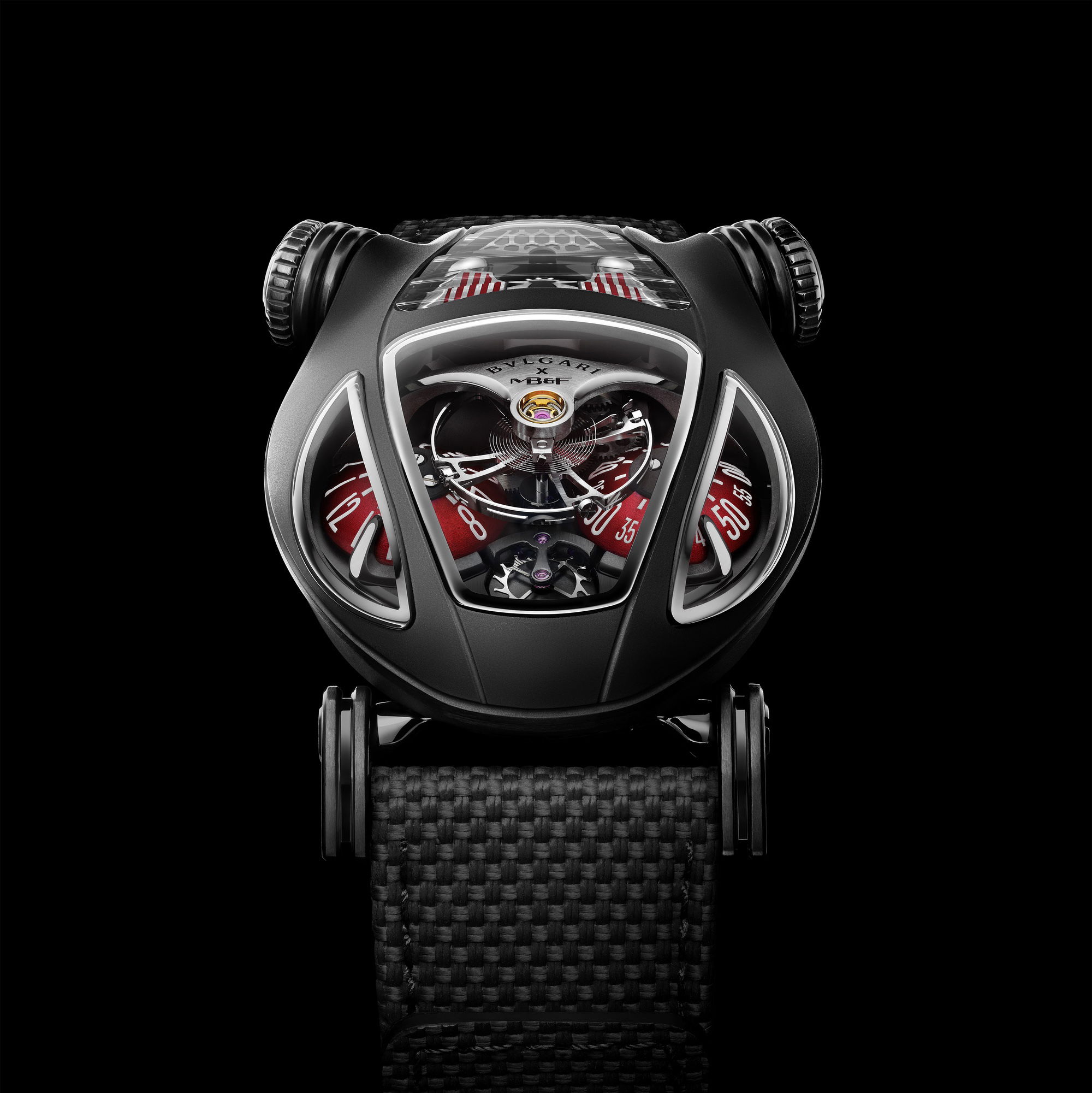 Beyond its reptilian origins, the Bvlgari x MB&F Serpenti draws inspiration from automotive design, reflecting the shared passion of its creators, Fabrizio Buonamassa Stigliani and Maximilian Büsser. The sleek case evokes the aerodynamic curves of high-performance sports cars, while the stepped sapphire crystal mirrors rear-window louvers. Even the movement incorporates elements reminiscent of a car engine, with a hexagonal grille motif paying tribute to past Serpenti designs. The intricate craftsmanship behind this watch ensures that only six to eight pieces can be produced per month, making it a highly exclusive collector’s item.