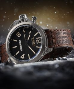 These Capsule watches are powered by a Swiss Sellita SW200 caliber movement, modified for U-BOAT, offering 41 hours of power reserve. They are water-resistant up to 100 meters and come with a handcrafted Tuscan leather strap. Limited editions include 90 pieces in titanium and 200 in other materials, blending futuristic design with a steampunk aesthetic.