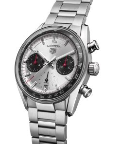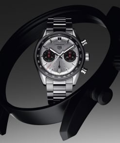 One of the standout features of this new release is its Glassbox design, which includes a curved flange and rhodium-plated indexes, ensuring clear visibility of the dial from various angles. The addition of red accents on the sub-dial hands and central seconds hand not only adds a touch of flair but also aids in quick and easy time reading. Additionally, the steel bracelet, a first for the redesigned Carrera collection, further enhances the watch’s look and appeal.